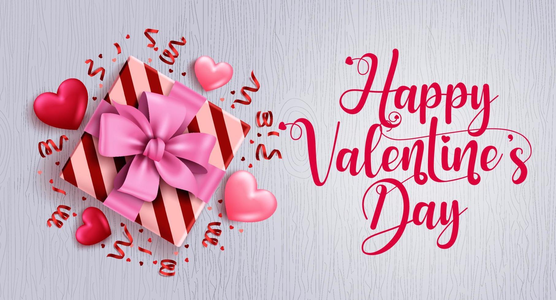 Valentines day greeting vector background template. Happy valentine's day text in empty space for messages with gift box and heart element for valentine's card design. Vector illustration Pro Vector