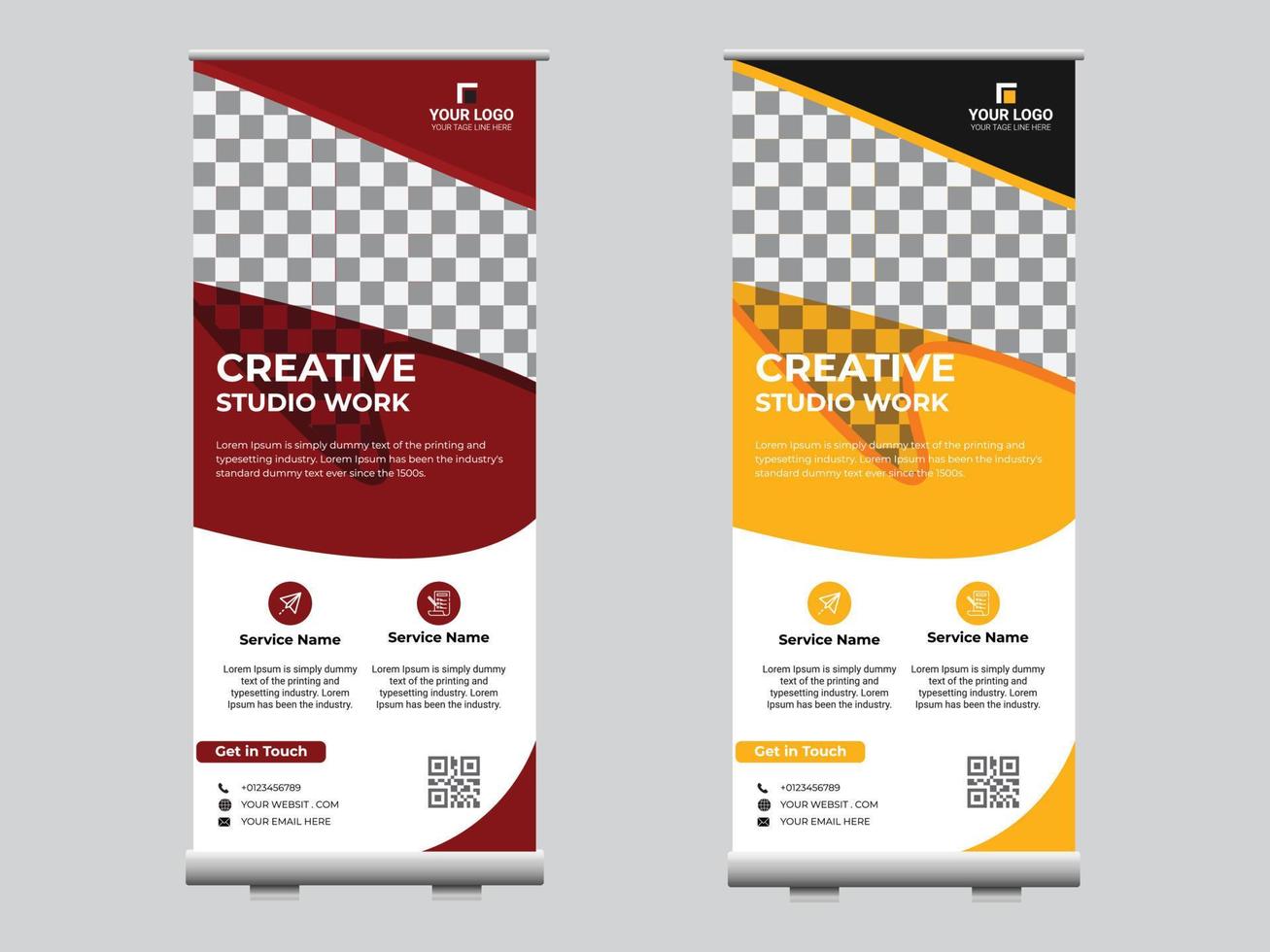 Abstract roll up display standee banner in dark and light shade Free Vector