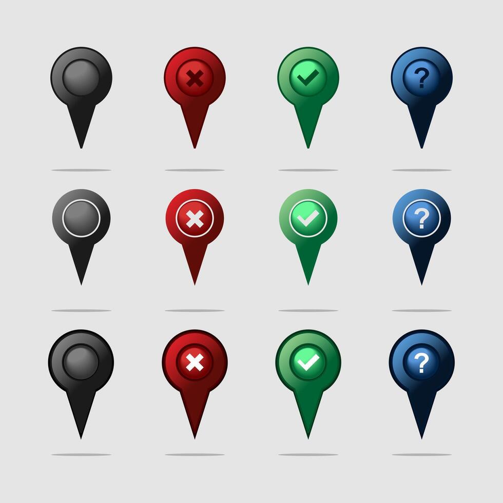 Set of mapping pins modern style. Marker sign with Yes No Maybe Question symbol Pro Vector