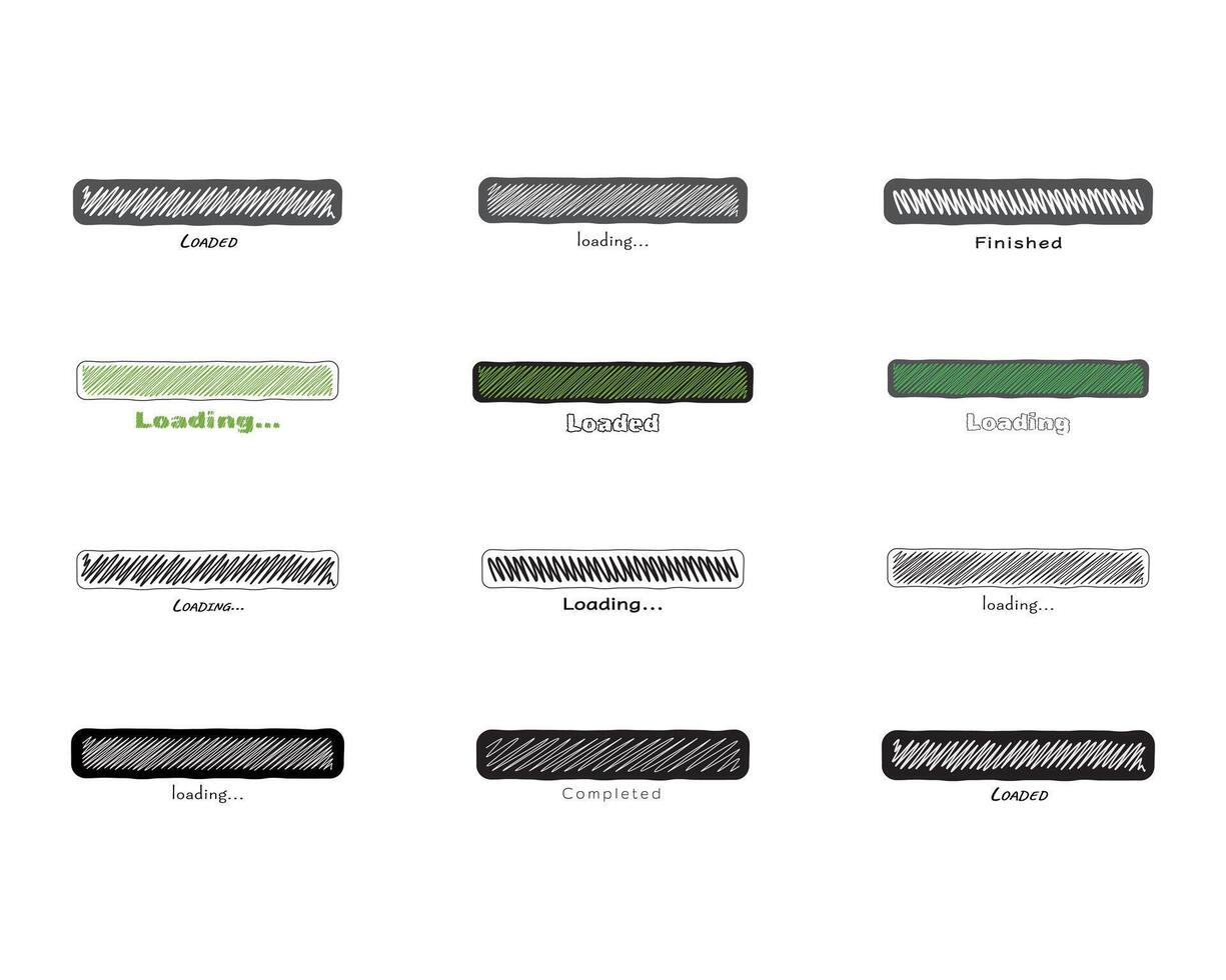 Collection Loading bar status icon. illustration. Set of loaded icons. Download progress. Donload or Upload. Hand-drawn sketch-scribble. Pro Vector