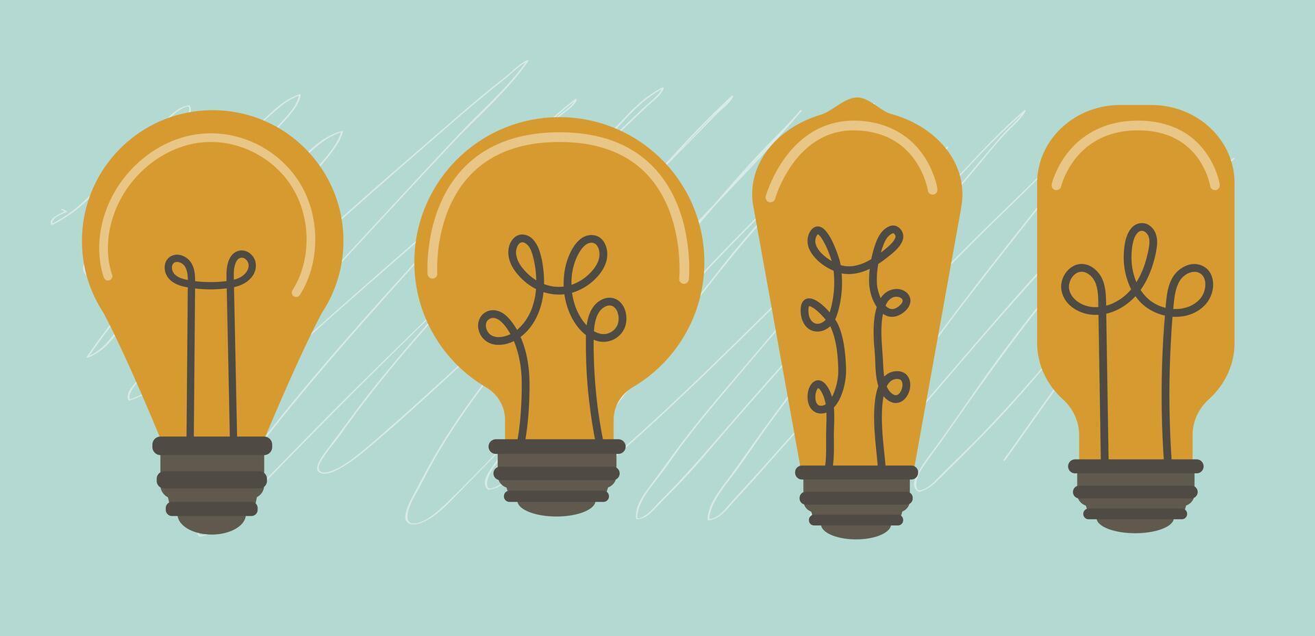 Set of abstract light bulb in minimalistic flat style. Idea brainstorm concept. Simple lamp collection Pro Vector