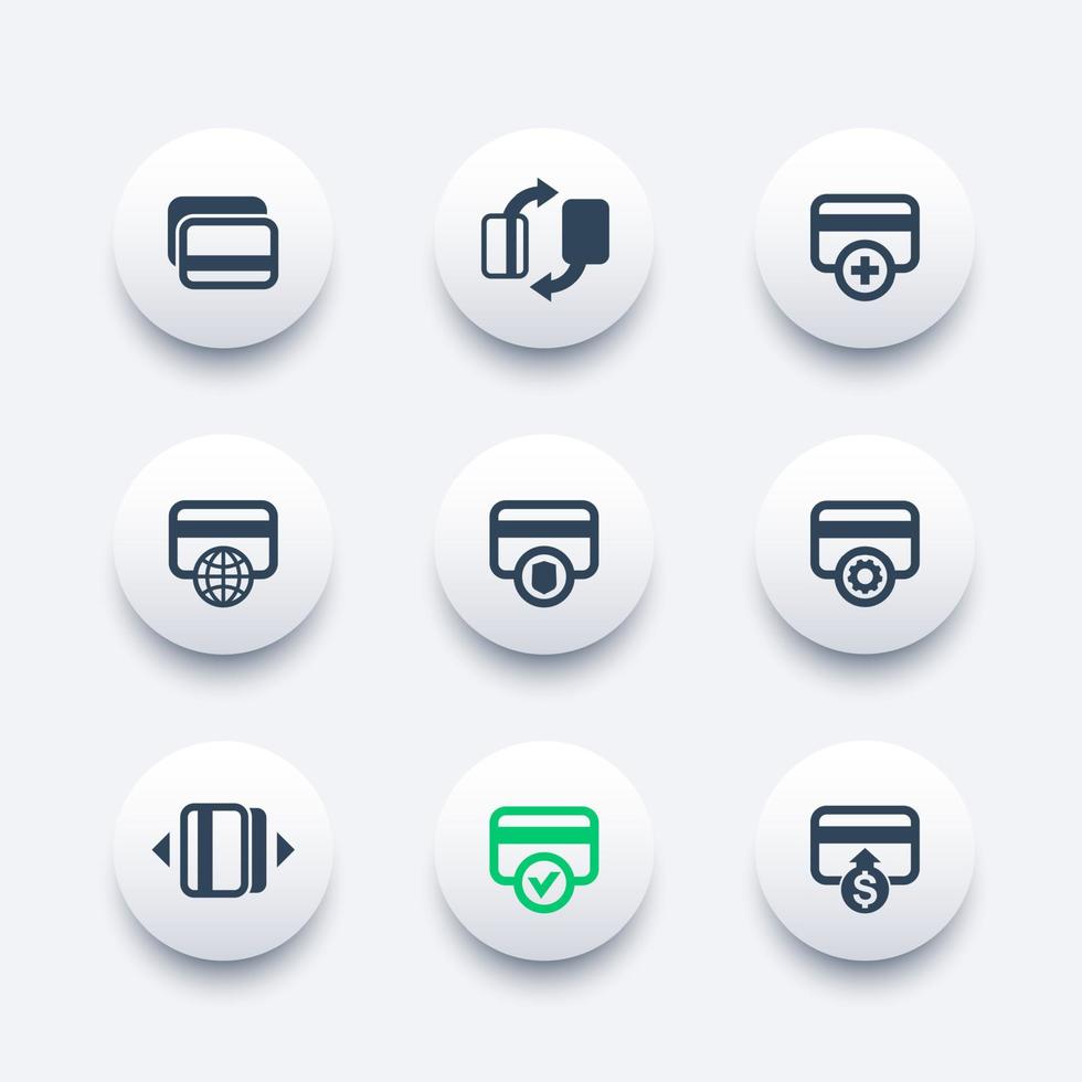 credit cards icons set for mobile banking app, secure payment, add new card, processing Pro Vector