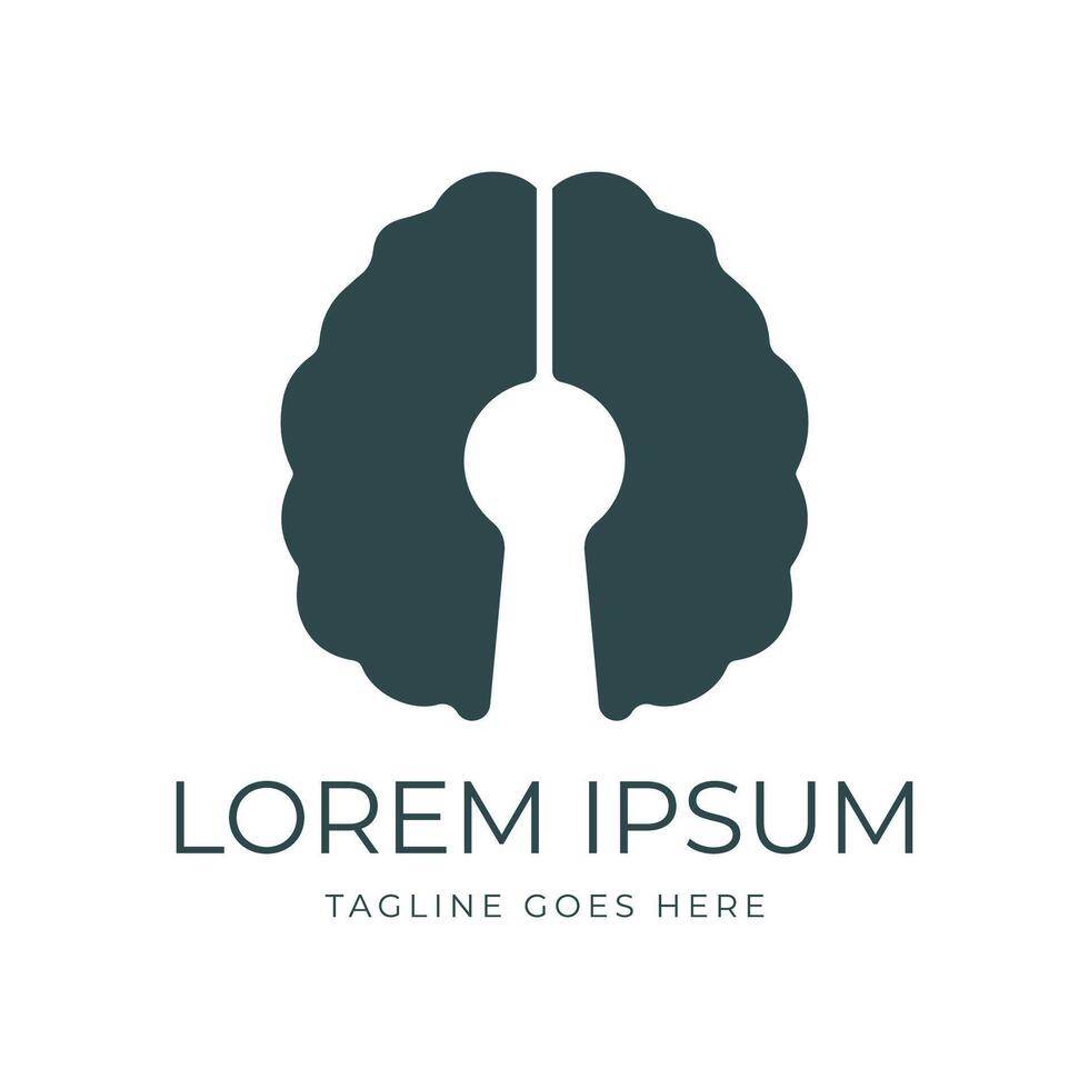 Simple Minimalist Brain with Keyhole for Secure Security Protection Technology Icon Illustration Design Pro Vector