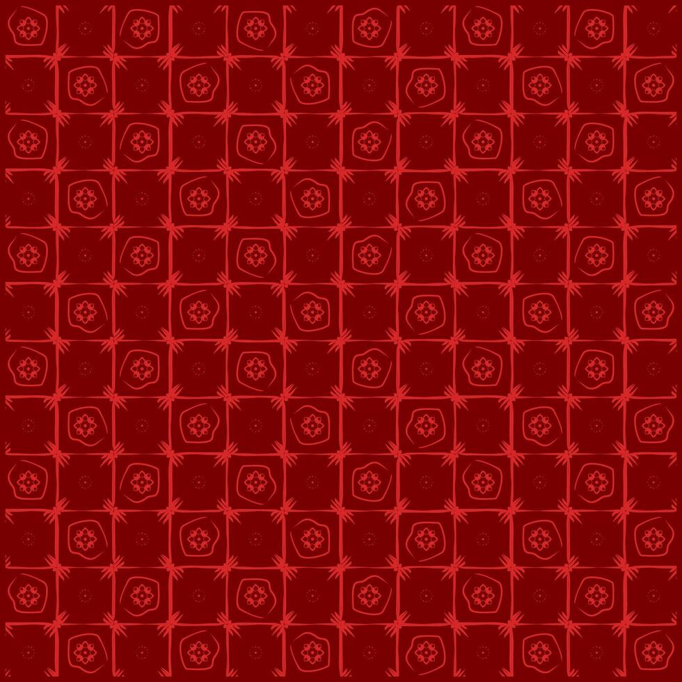 Batik pattern with multiple square with simple ornaments and dark red background Pro Vector