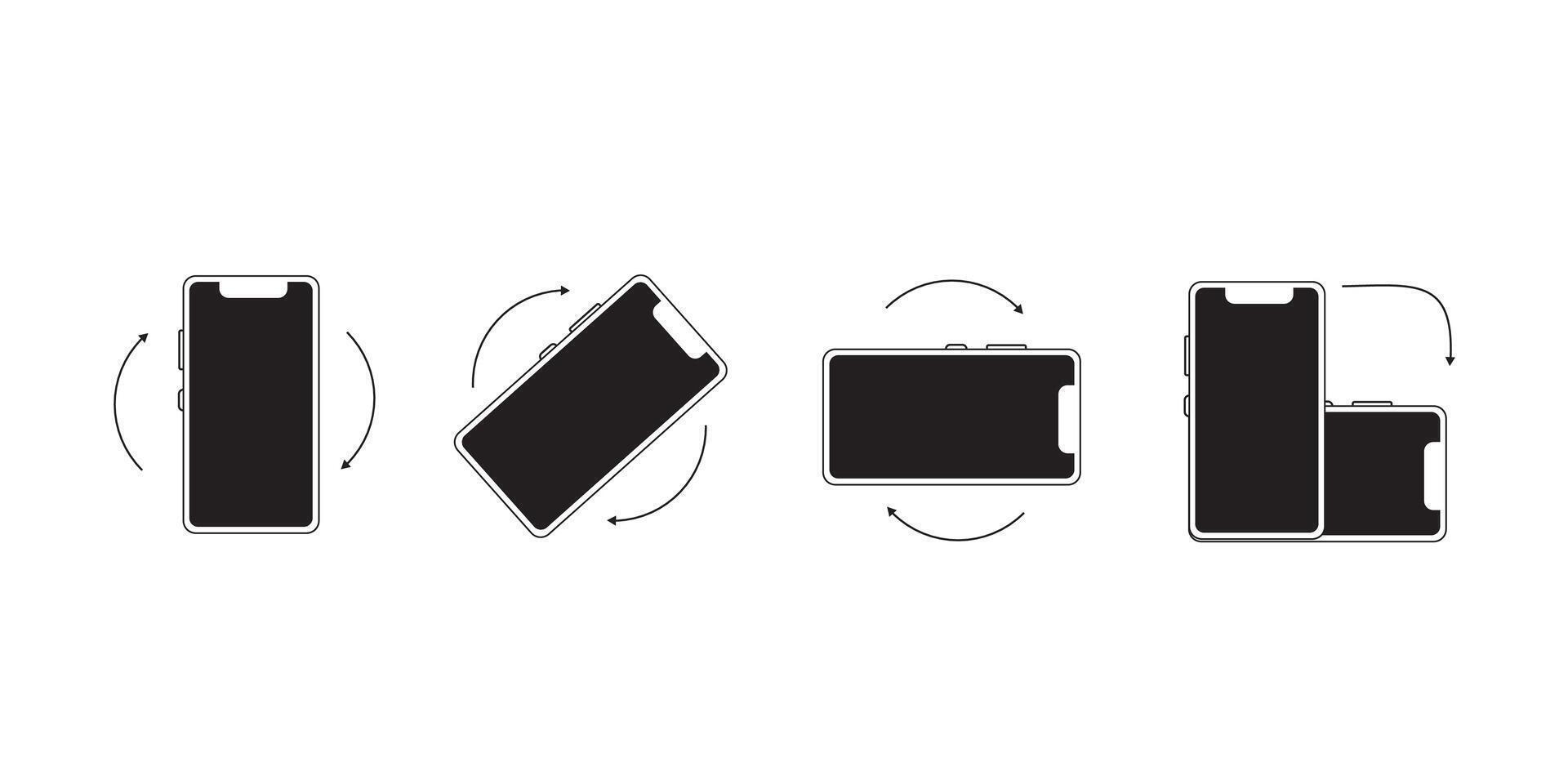 Rotate smartphone icon set. Turn phone around icon collection.Device rotation sign.Rotate phone symbol. Free Vector