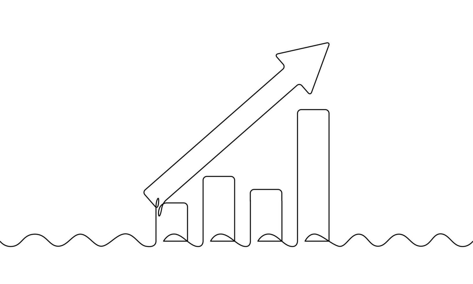 Continuous line drawing of bar chart. Illustration of graph. Arrow up icon. Business growth. Object one line. Single line art vector