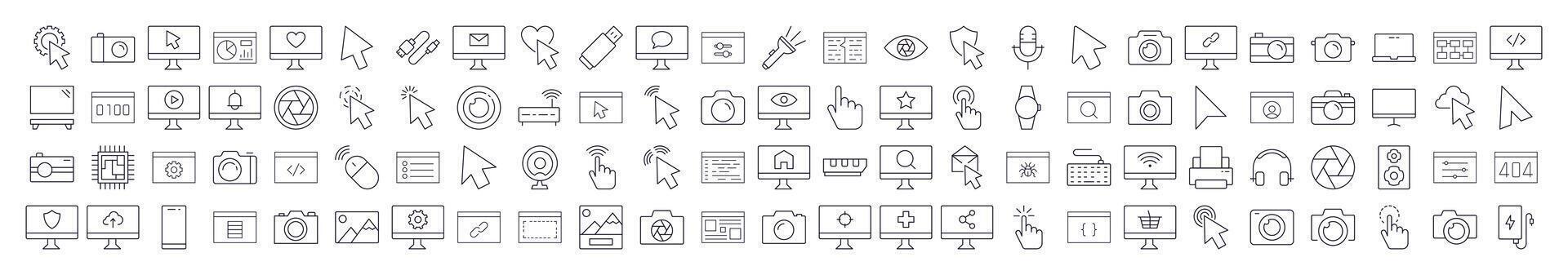 Internet and Computer Interface Pack of Thin Icons. Editable Stroke. Suitable for Web Sites, Books, Cards, Apps Pro Vector