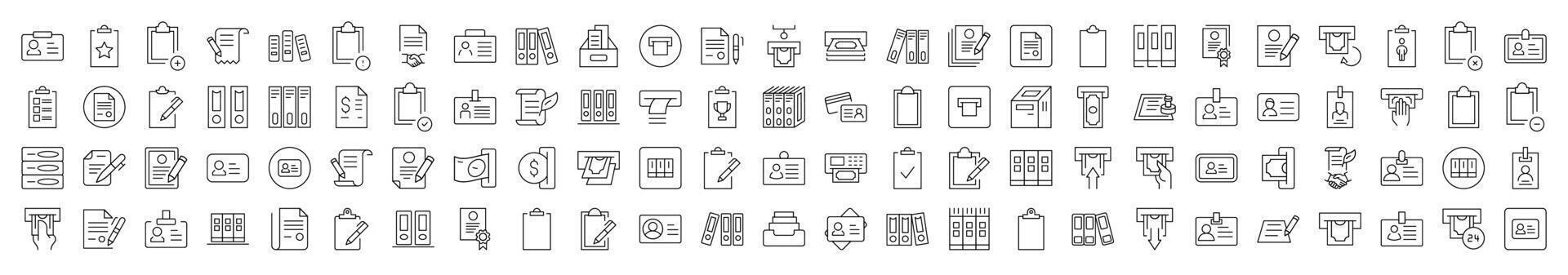 Bundle of Line Icons of Employee Badge, Documents, Clipboard, ID Card. Editable Stroke. Minimalistic Linear Pictogram for Design of Cards, Apps, Banners, Posts Pro Vector