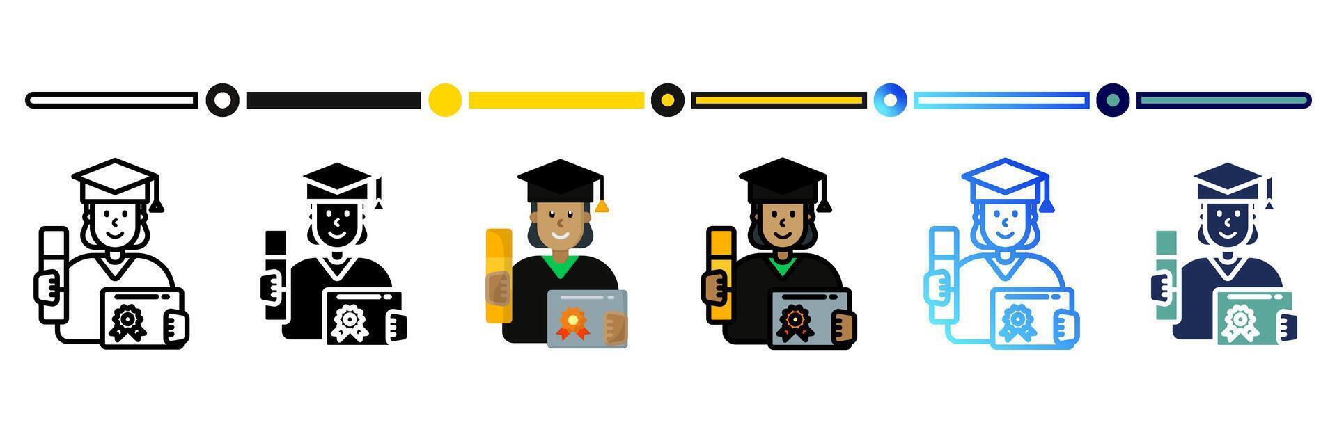 Graduation icon on banner web icons collection. 6 Various style icons. For sign, symbol, element, presentation, infographic or web graphics. Pro Vector