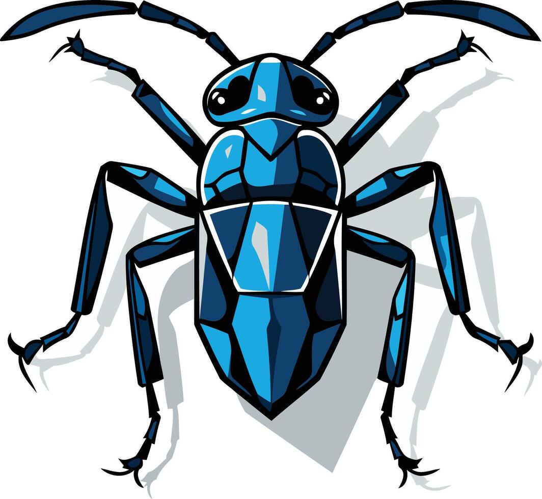 A striking blue beetle with geometric patterns, captured in a dynamic pose vector