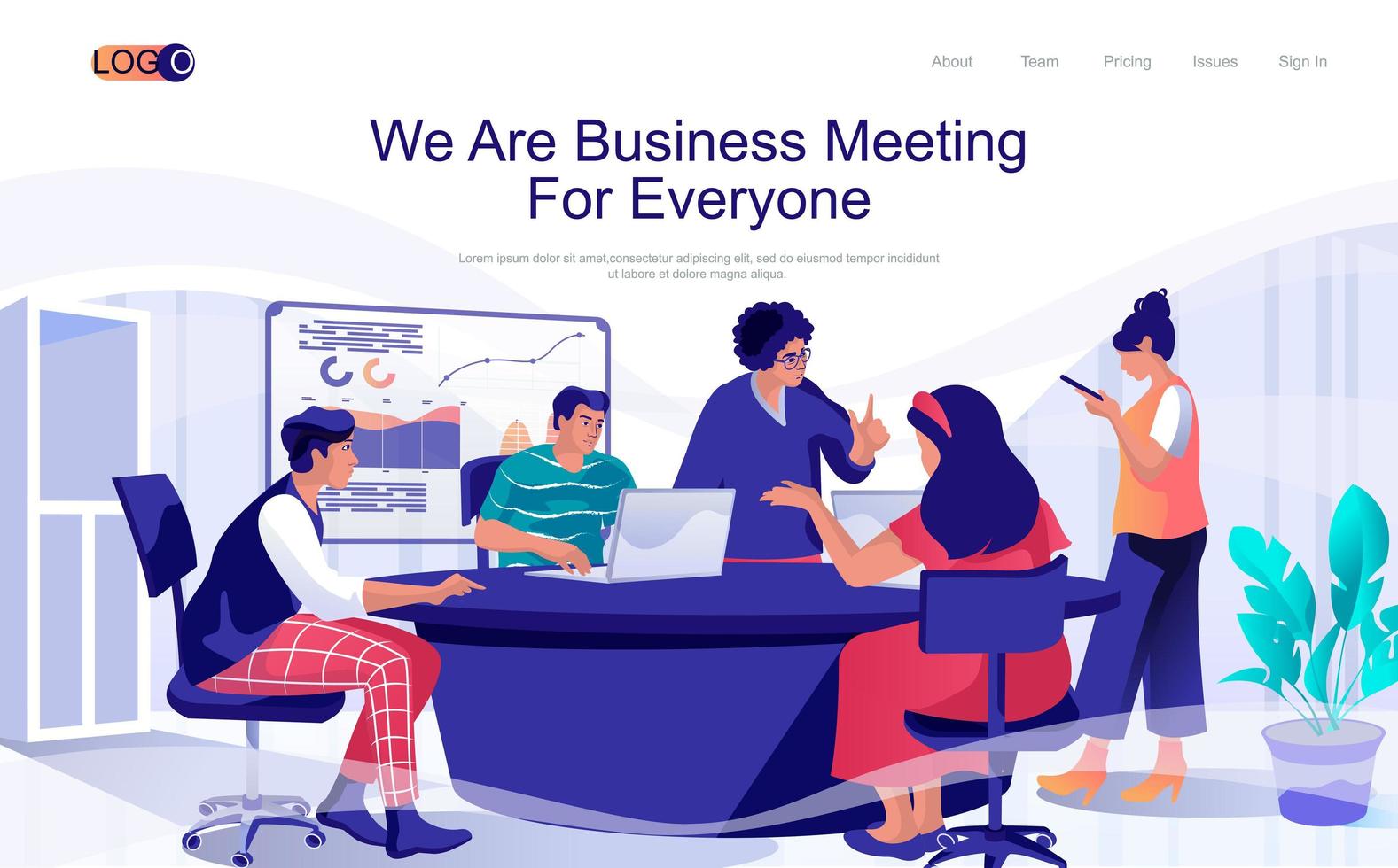 Business meeting concept isometric landing page. People discuss and generate ideas in conference room, colleagues brainstorming, 3d web banner. Vector illustration in flat design for website template Pro Vector