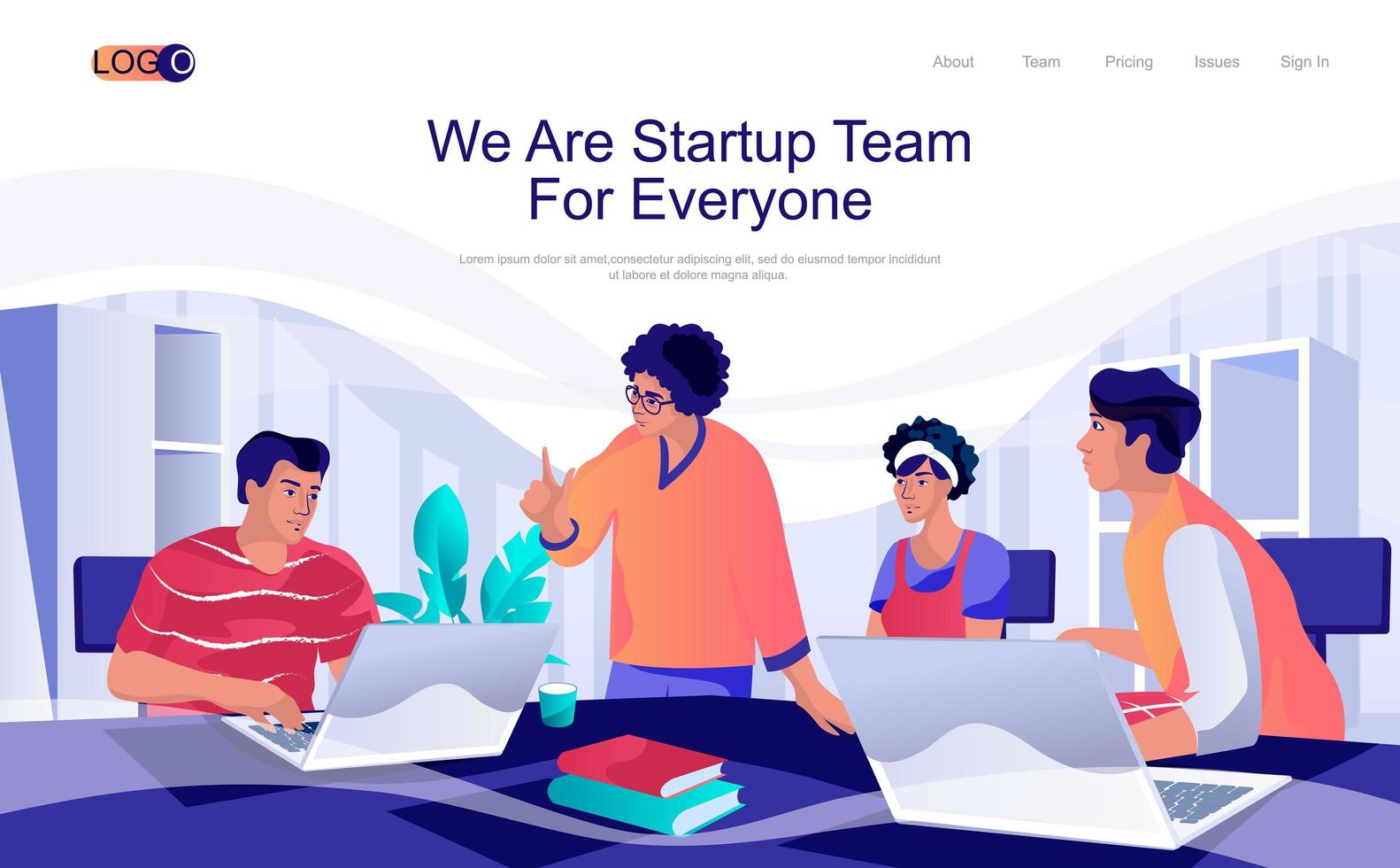 Startup team concept isometric landing page. People working and developing new project together, businesspeople collaboration, 3d web banner. Vector illustration in flat design for website template Pro Vector