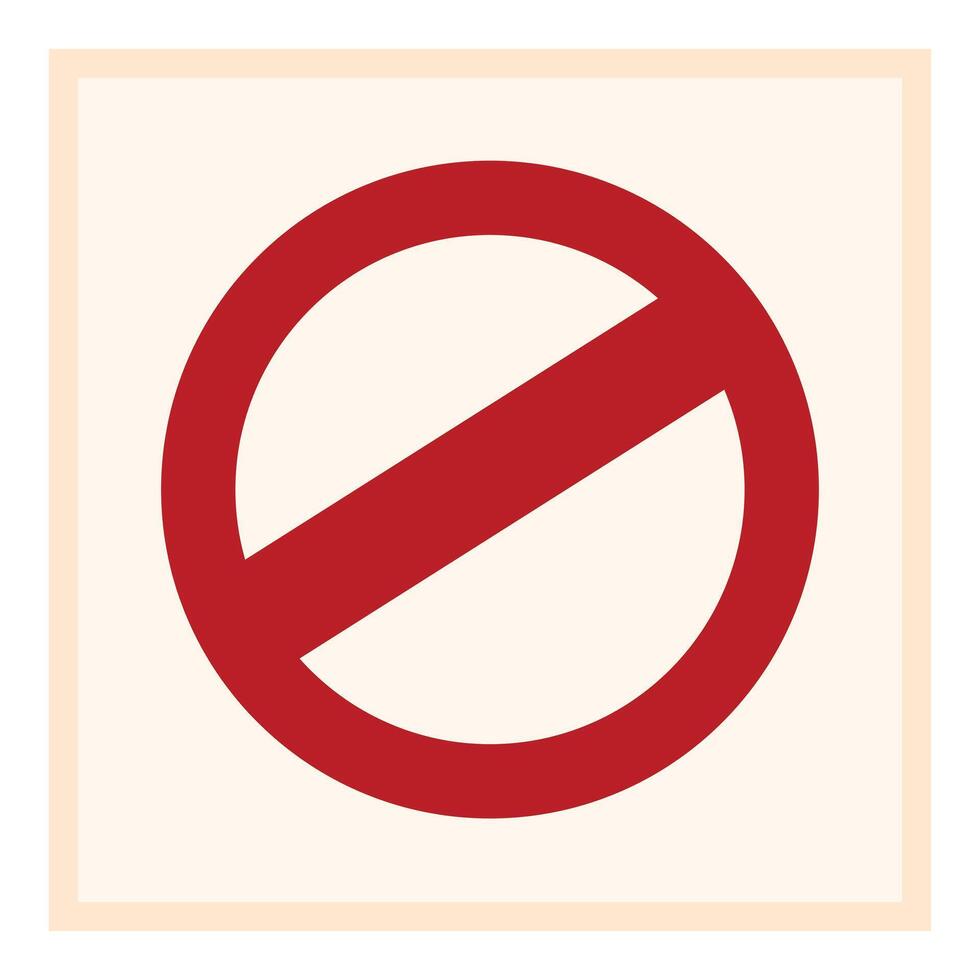 Red forbidden symbol denying access with diagonal line on square background Pro Vector