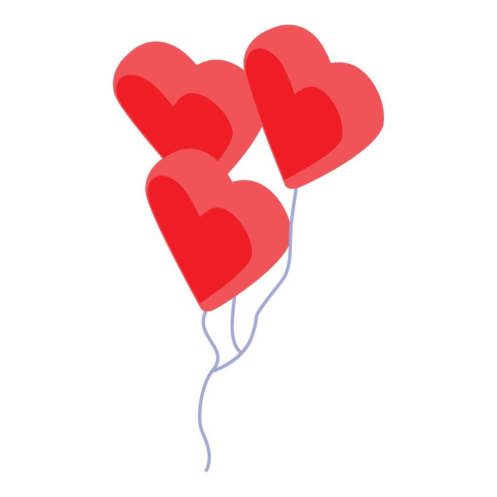 Three red heart shaped balloons floating with blue strings on white background Pro Vector