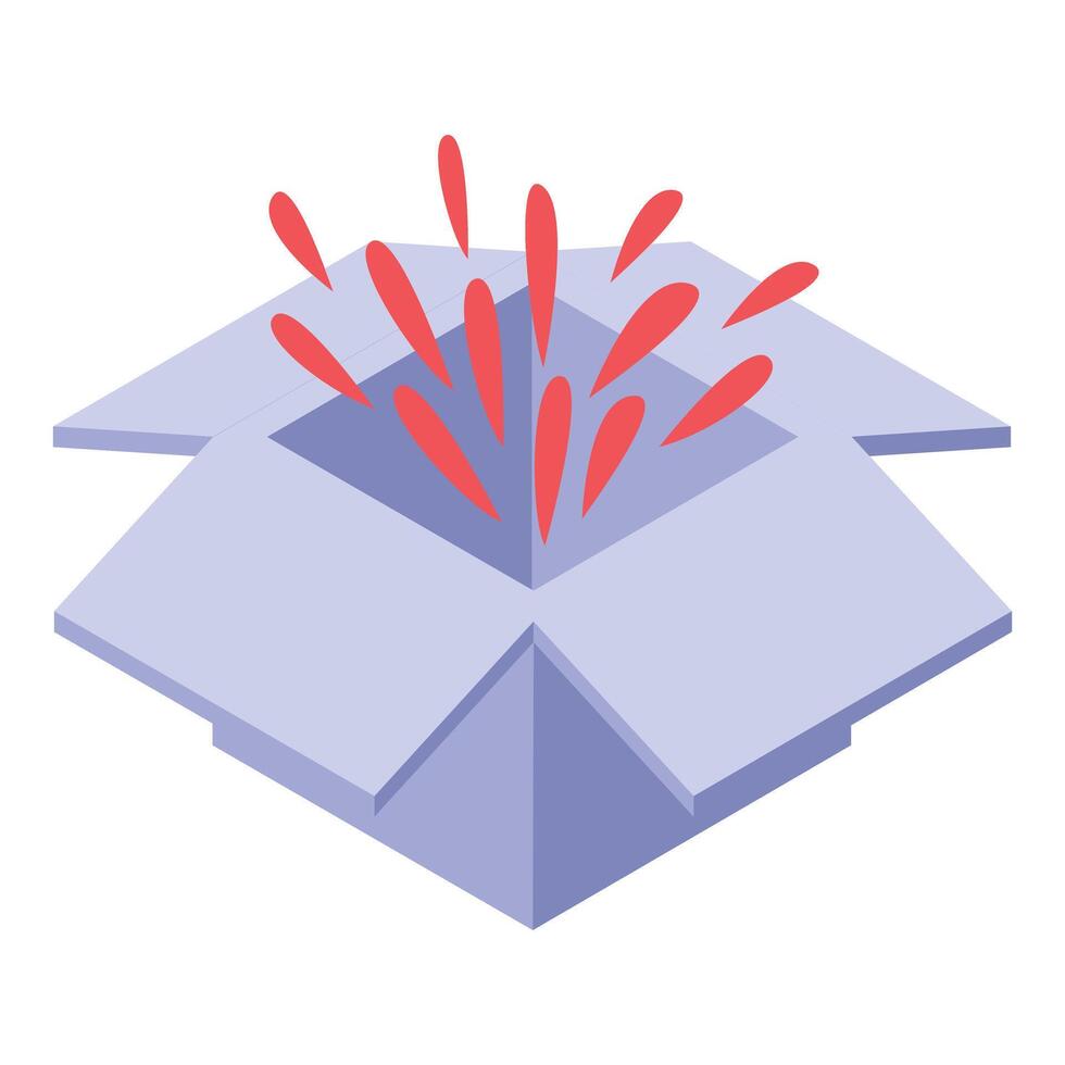 Open box with fireworks exploding from it isometric icon Pro Vector