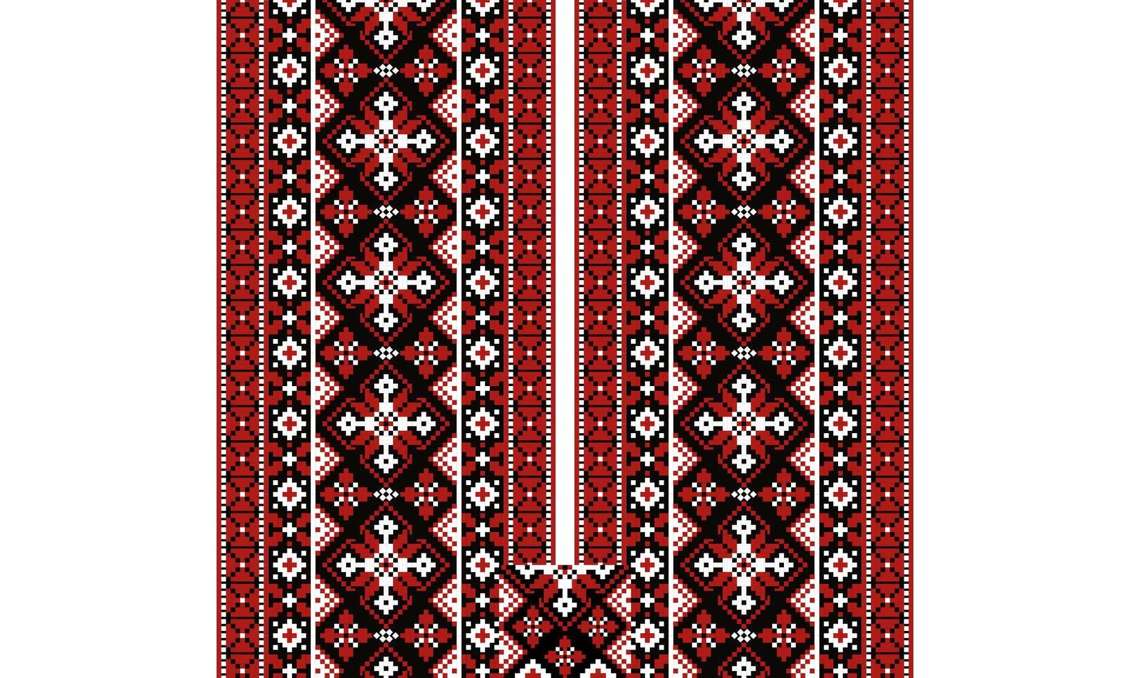 a detailed pattern composed of pixel designs with red and white square on black background , design for collar. Pro Vector