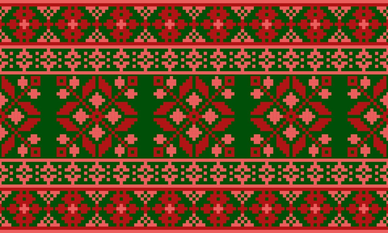a detailed pattern composed of pixel designs with red and pink square on green background , design for fabric or various pattern printing works. Pro Vector