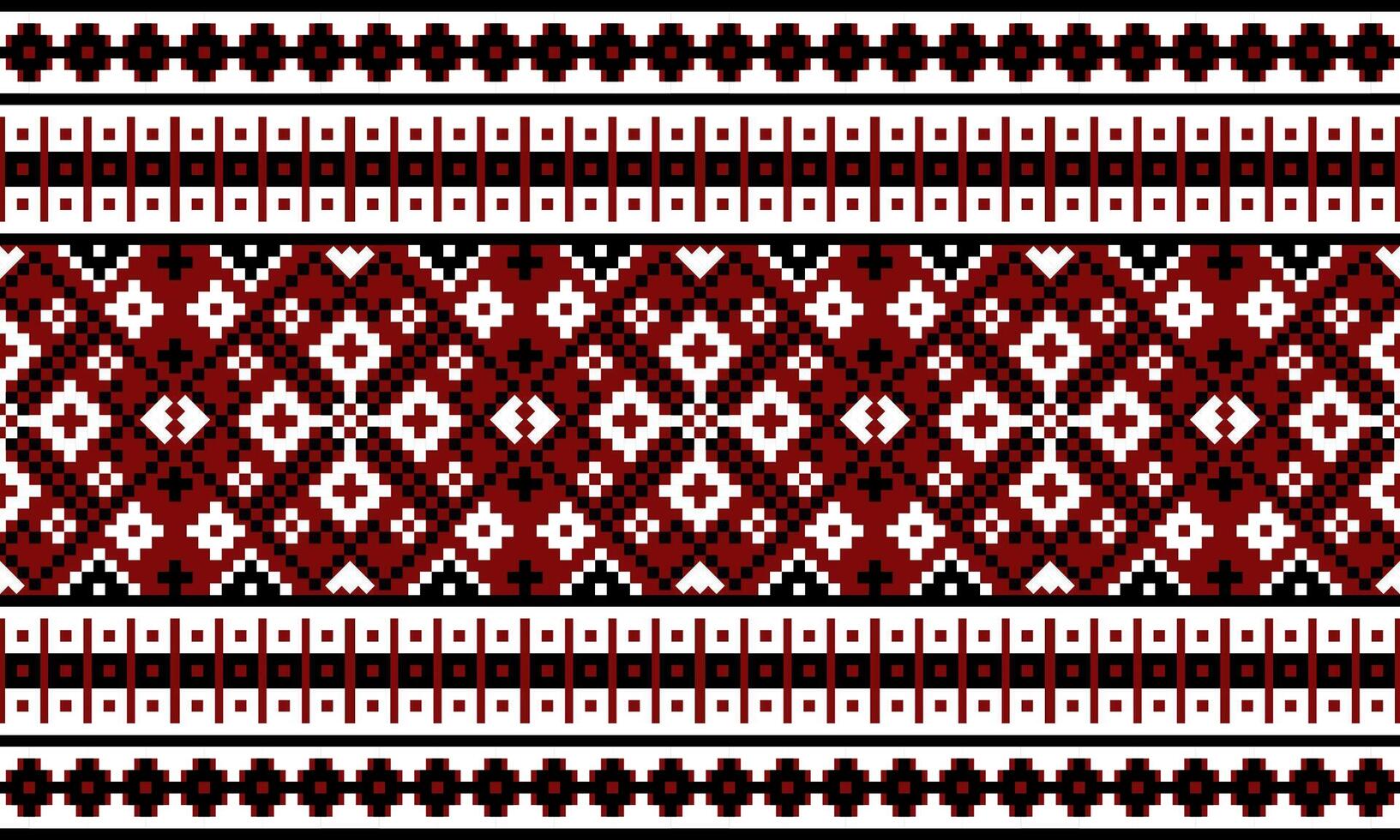 a detailed pattern composed of pixel designs with black and white square on red background , design for fabric or various pattern printing works. Pro Vector