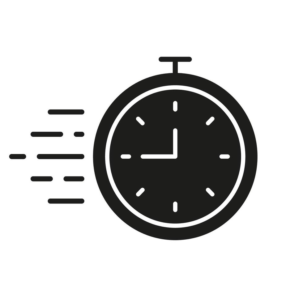 Speed Timer Silhouette Icon, Fast Moving Clock Symbolizing Urgency For Fast Actions. Productivity And Efficient Task Management. Isolated Illustration Pro Vector