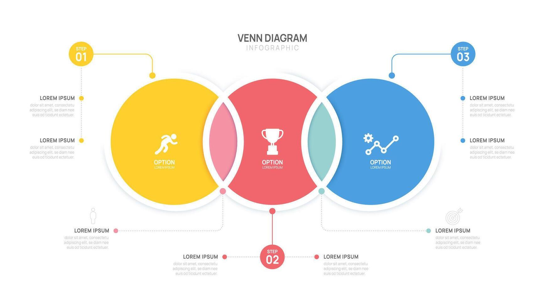 Infographic Circle Venn diagram chart template for business start up presentation with venn diagram elements illustration. Pro Vector