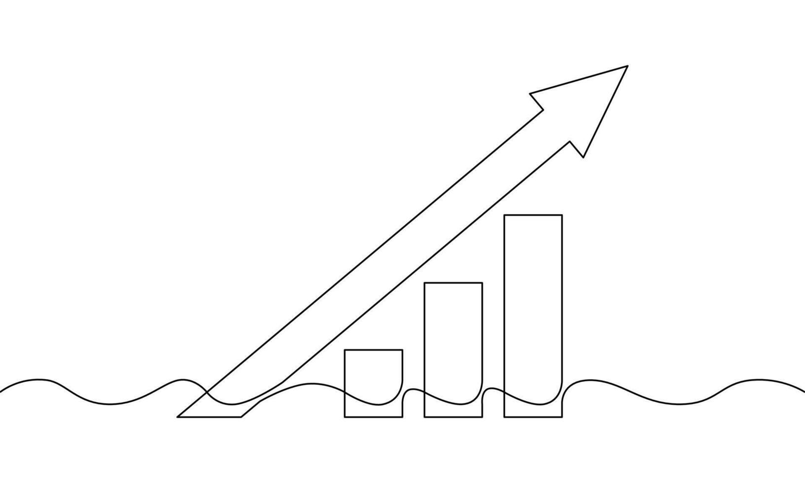 Continuous line drawing of arrow up. Illustration of graph. Bar chart sign symbol. Single line art of business growth. Object one line of increasing arrow vector