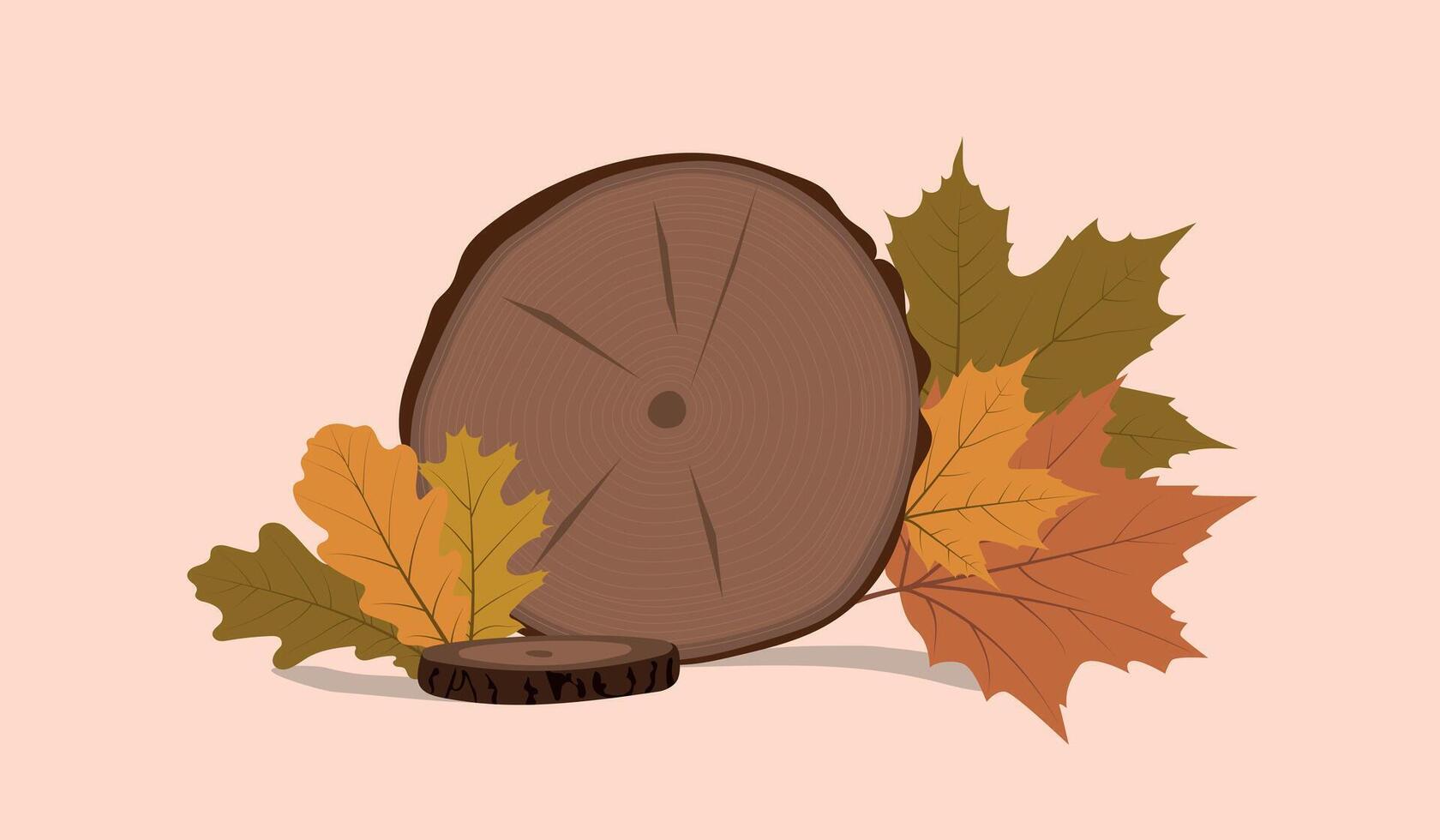 Empty wooden log with space for text on a background of fall leaves. Free Vector
