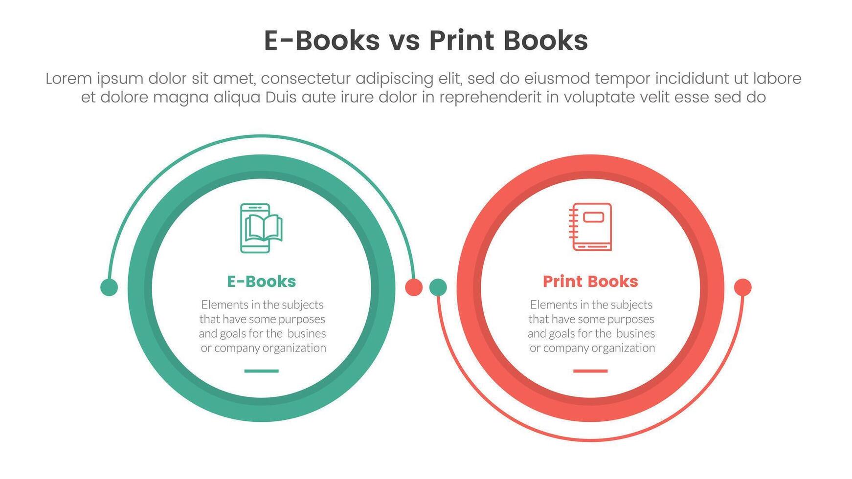 ebook vs physical book comparison concept for infographic template banner with big circle linked connection circular arrow with two point list information Free Vector