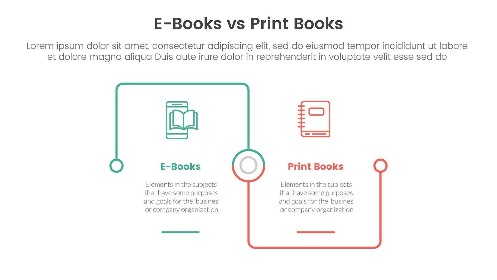 ebook vs physical book comparison concept for infographic template banner with square outline linked connection square base with two point list information Free Vector