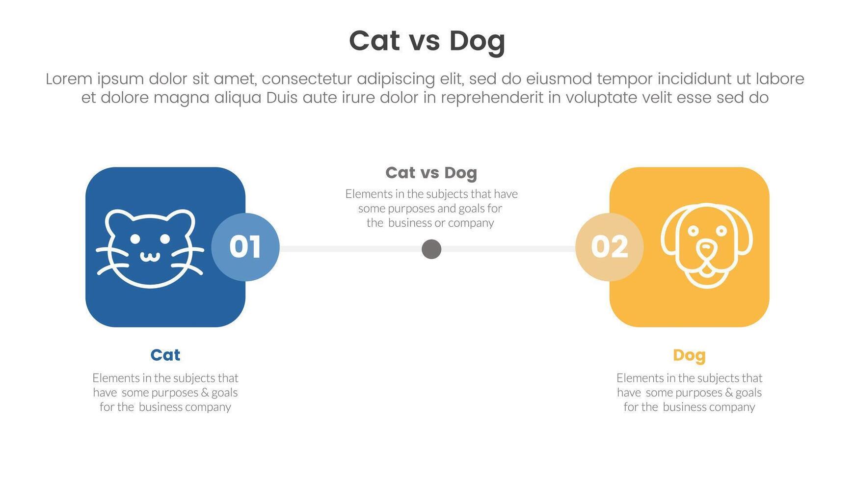 cat vs dog comparison concept for infographic template banner with round square box side by side with two point list information vector