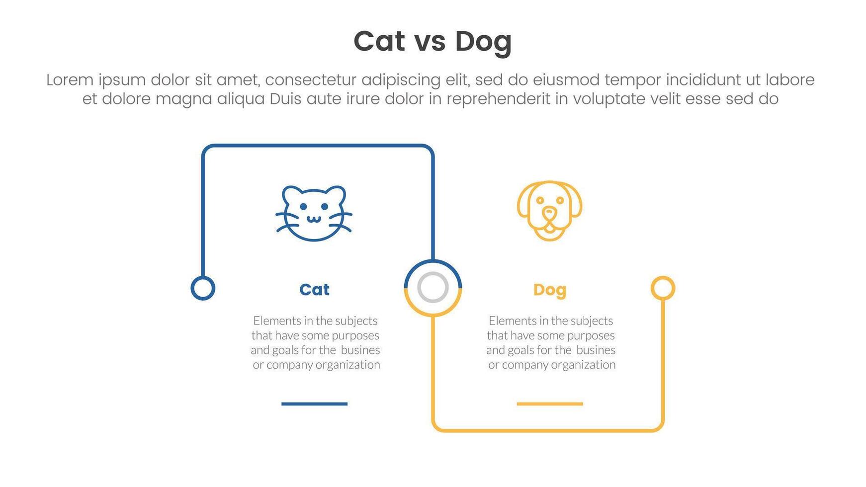 cat vs dog comparison concept for infographic template banner with square outline linked connection square base with two point list information vector