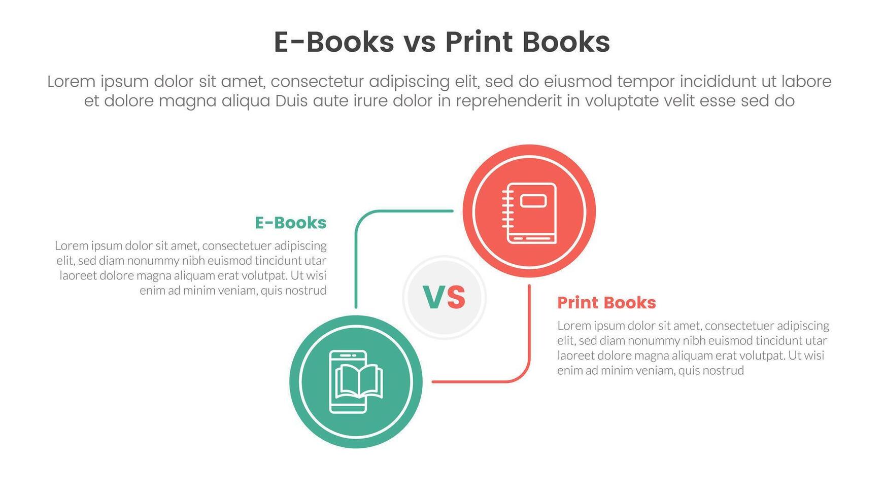 ebook vs physical book comparison concept for infographic template banner with big circle circular and connection with two point list information vector