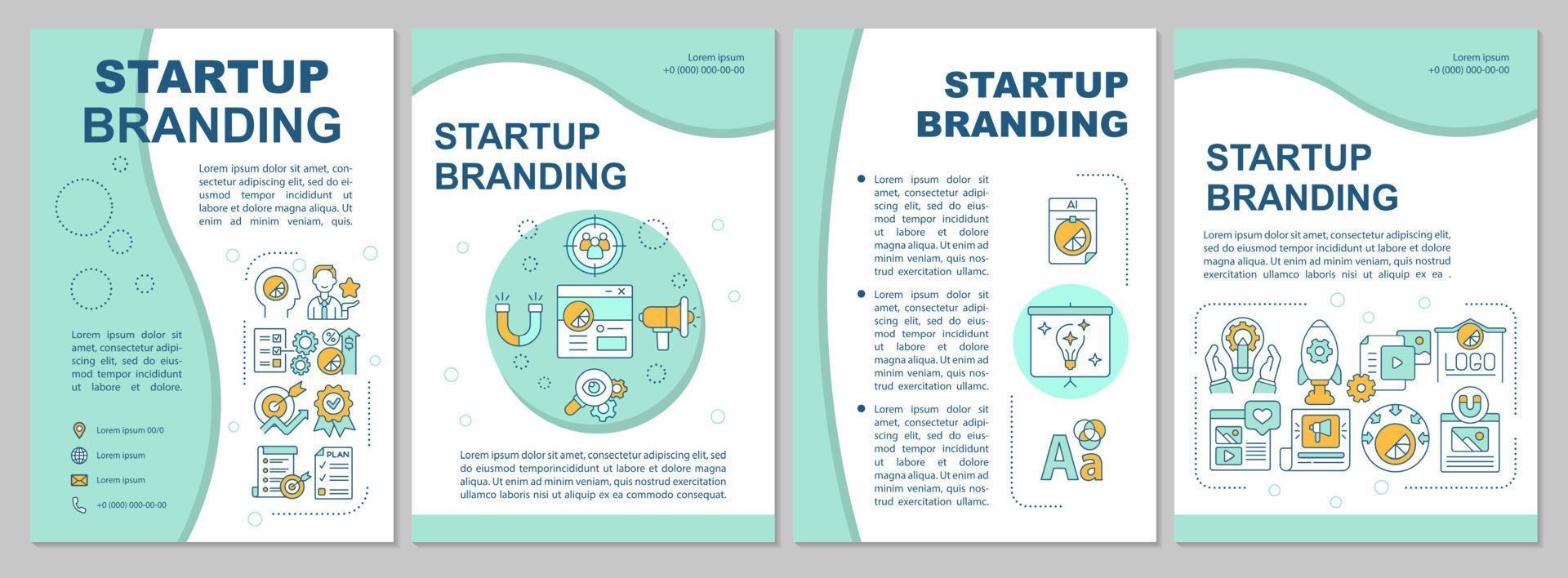 Startup branding mint brochure template. Creating business. Flyer, booklet, leaflet print, cover design with linear icons. Vector layouts for presentation, annual reports, advertisement pages Pro Vector