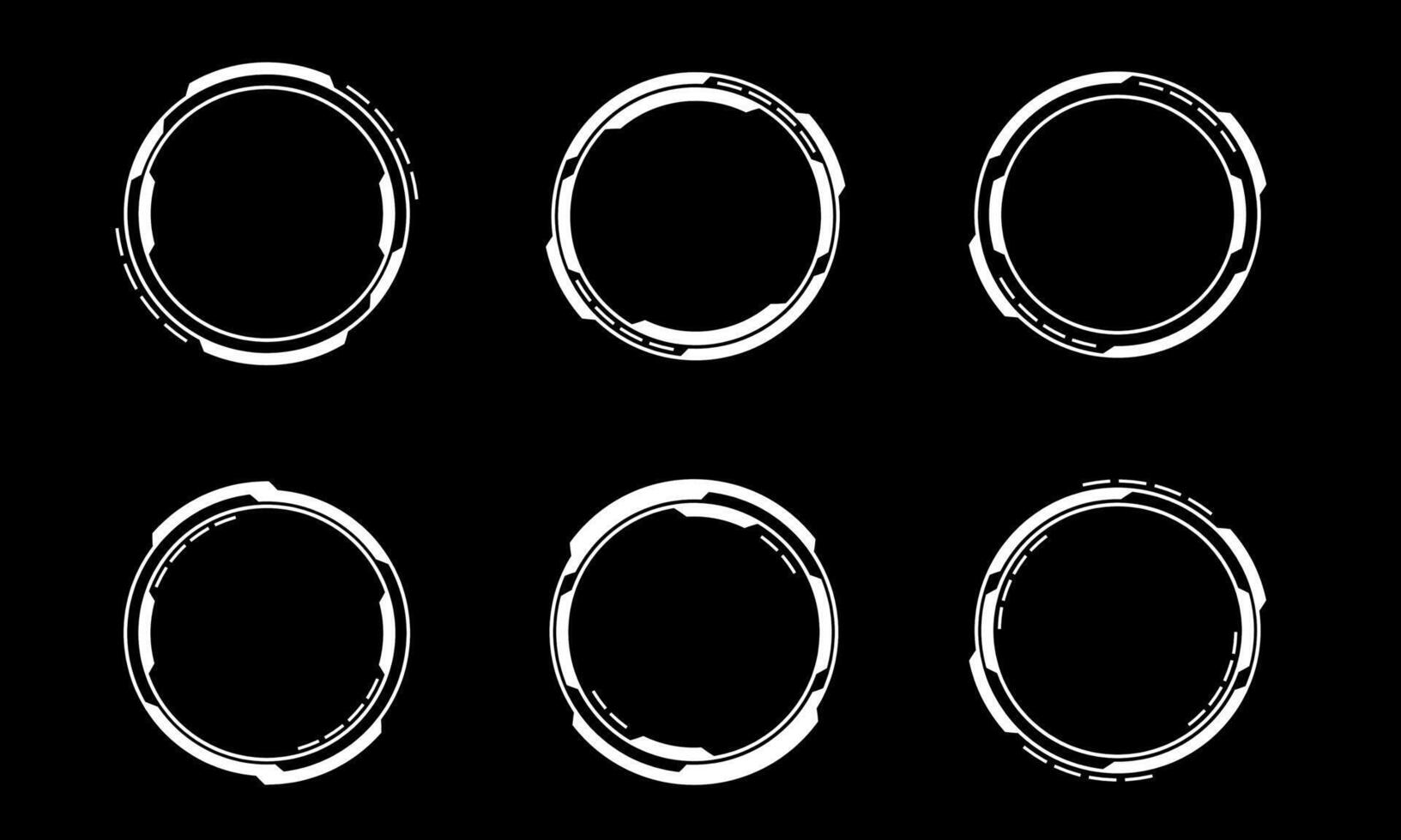 Set of sci fi white circle user interface elements technology futuristic design modern creative on black background Pro Vector