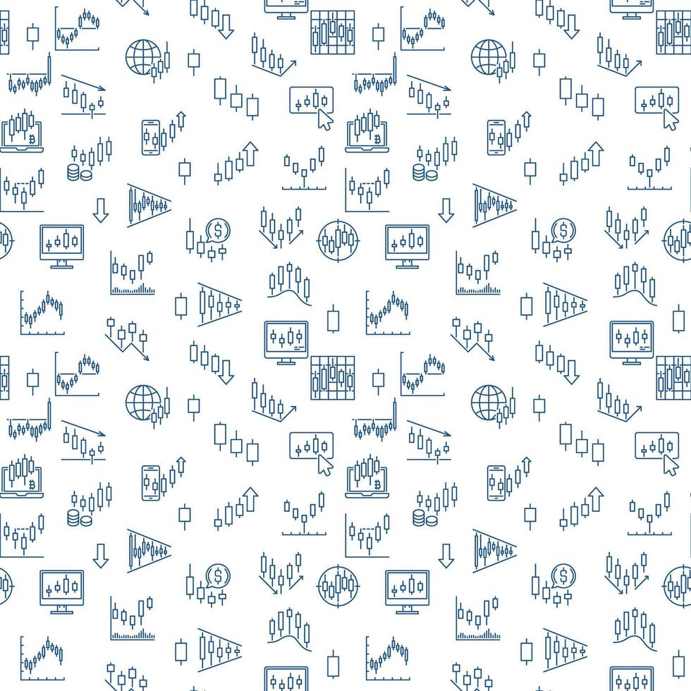 Bitcoin Crypto Trading seamless pattern with Candlestick Charts signs in outline style Pro Vector