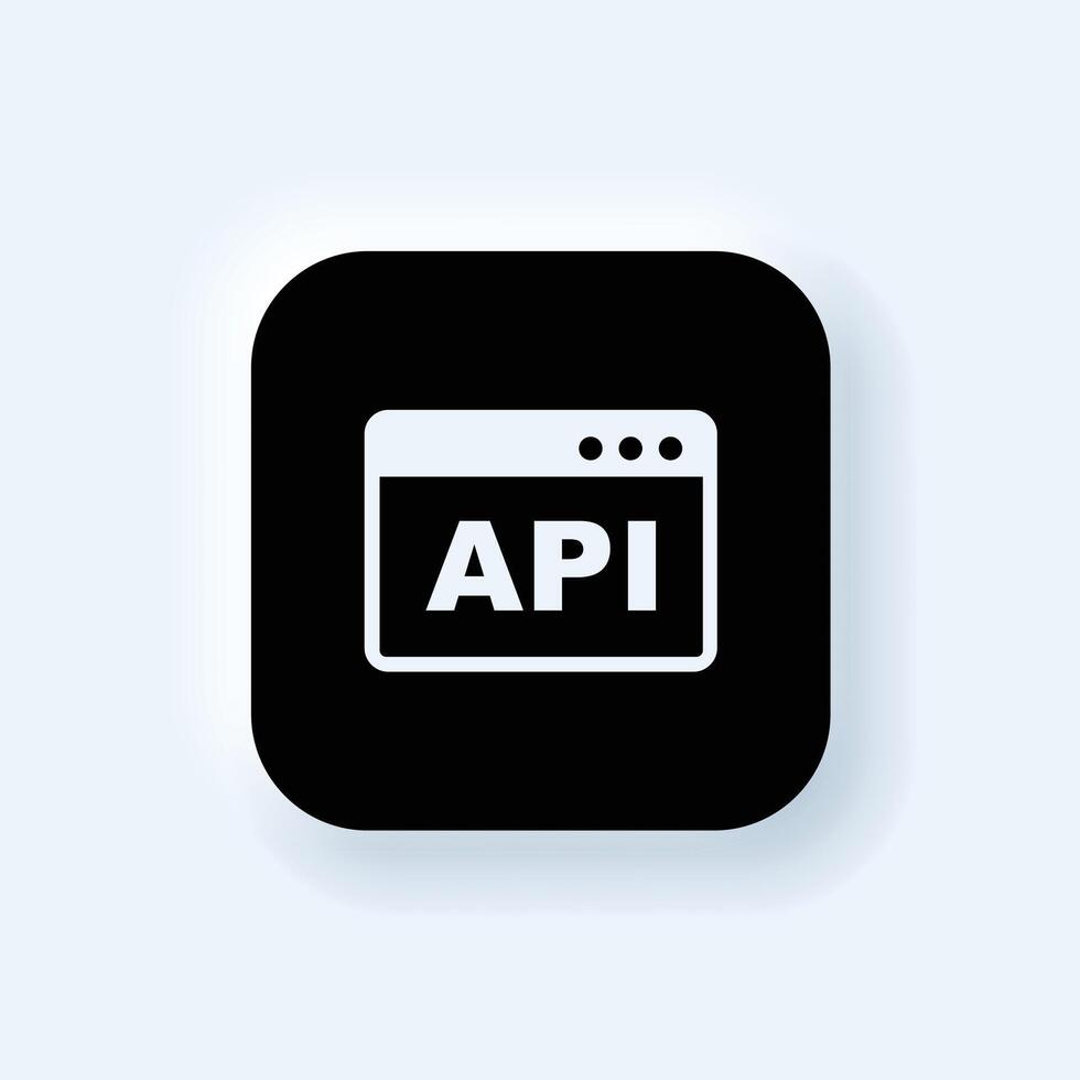 a black and white icon of a computer monitor with web API sign on it. Pro Vector