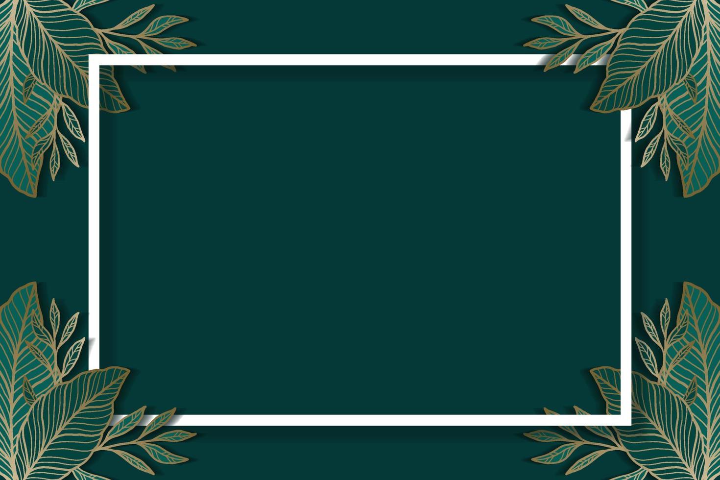 golden leaves linear design background with frame. abstract background. vector Pro Vector