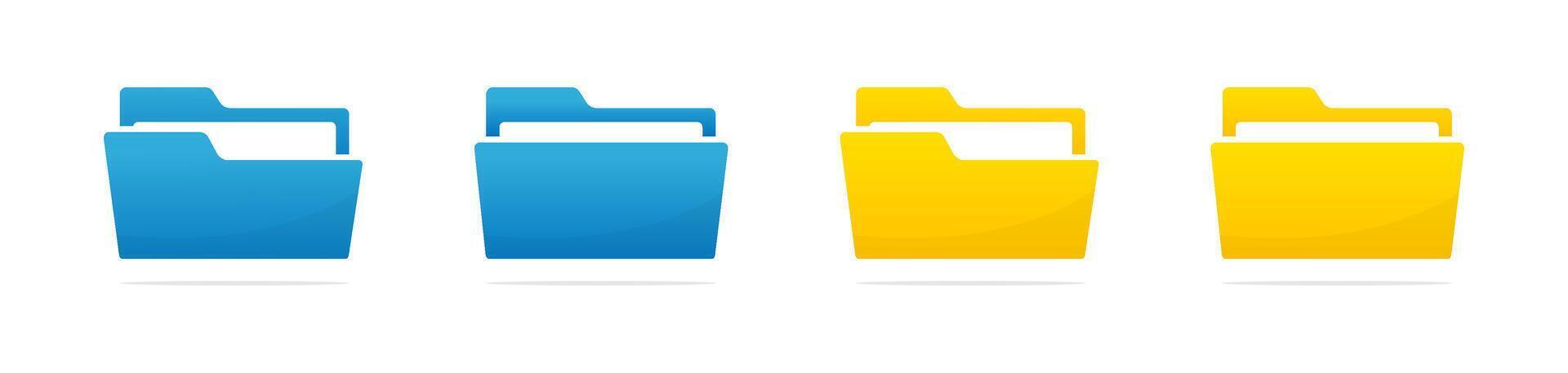 File folder flat icons. File folder buttons. File folder icon set. Opened and closed folders Pro Vector