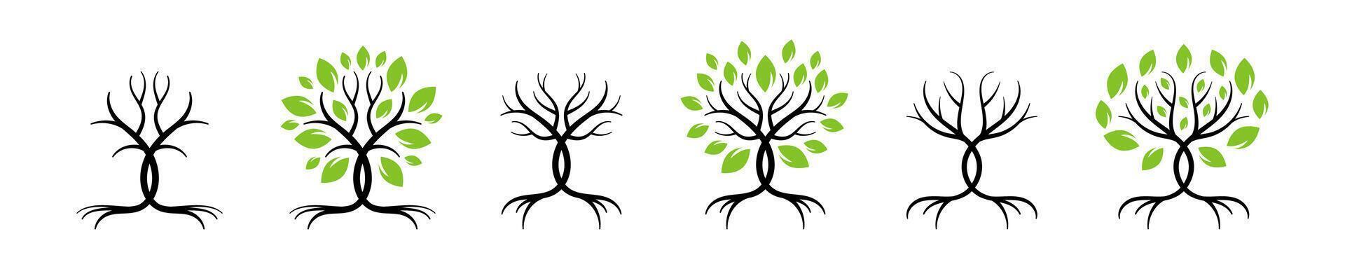 Tree logo. Tree with leaves illustration. Tree and roots icons. Tree with root. Pro Vector