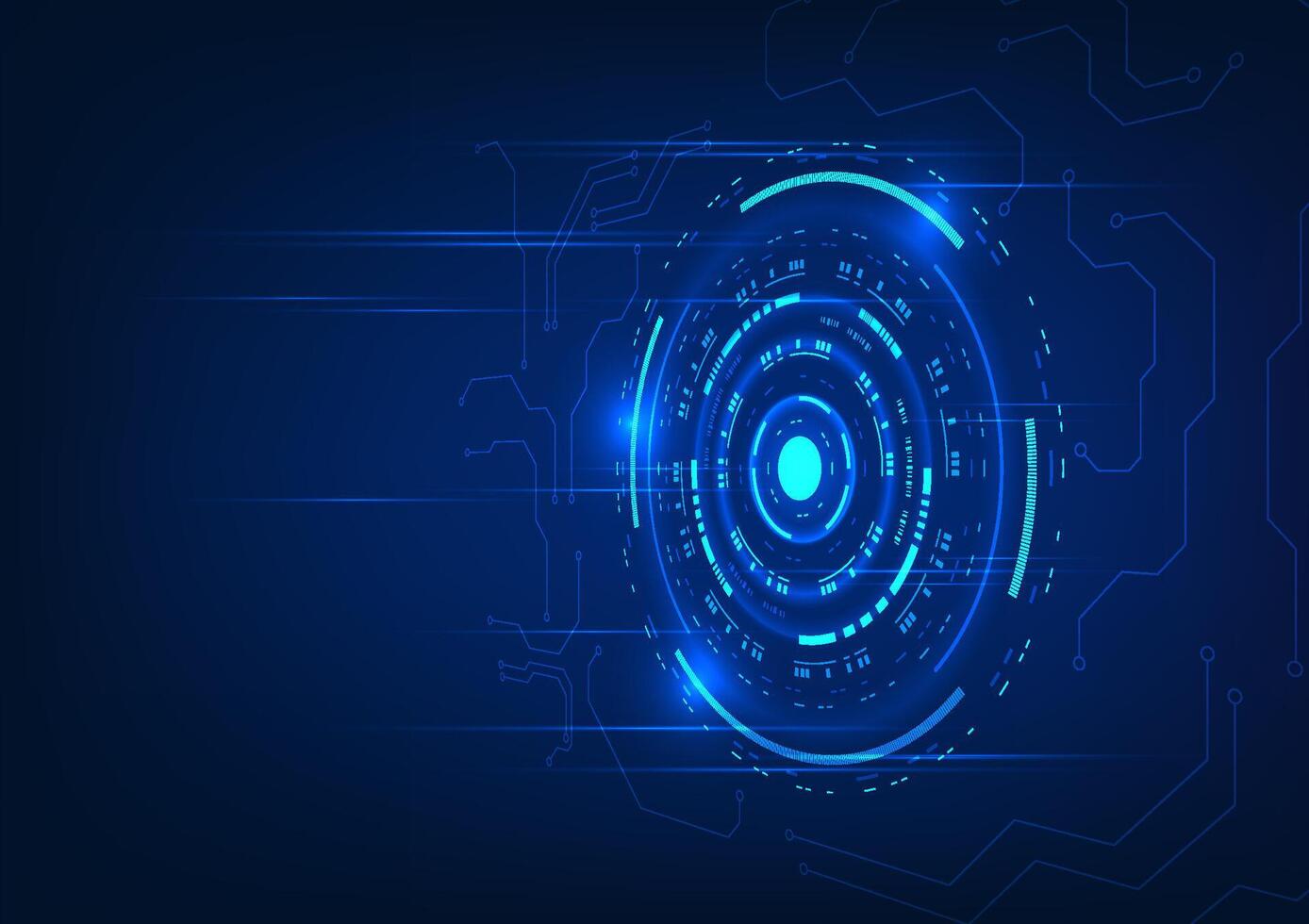 Technology background. Overlapping light beam technology circles, showing data processing in the system. Illustration, , poster. Pro Vector