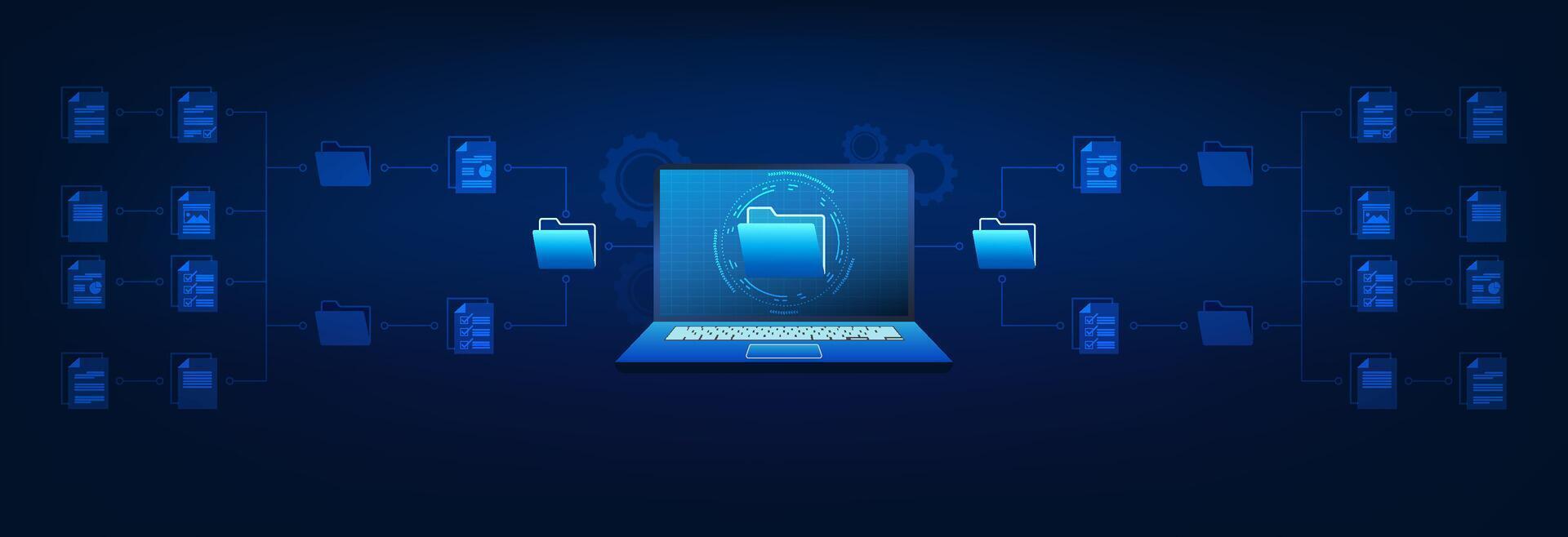 Computer technology background. The screen is a document file connected to a document folder that is used to work and store electronic document files online. Pro Vector