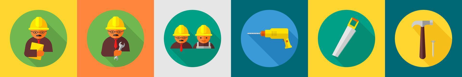 A set of 6 construction icons as architecture, constructor, drill machine Pro Vector