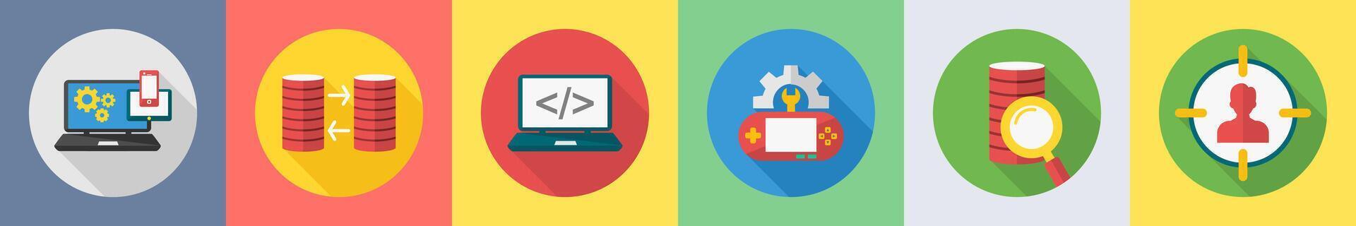 A set of 6 SEO icons as responsive, data transfer, programming Pro Vector