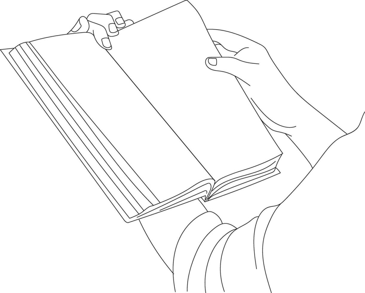 Open Book On Hand, Stacks of books for reading, Hand drawn in thin line style Pro Vector