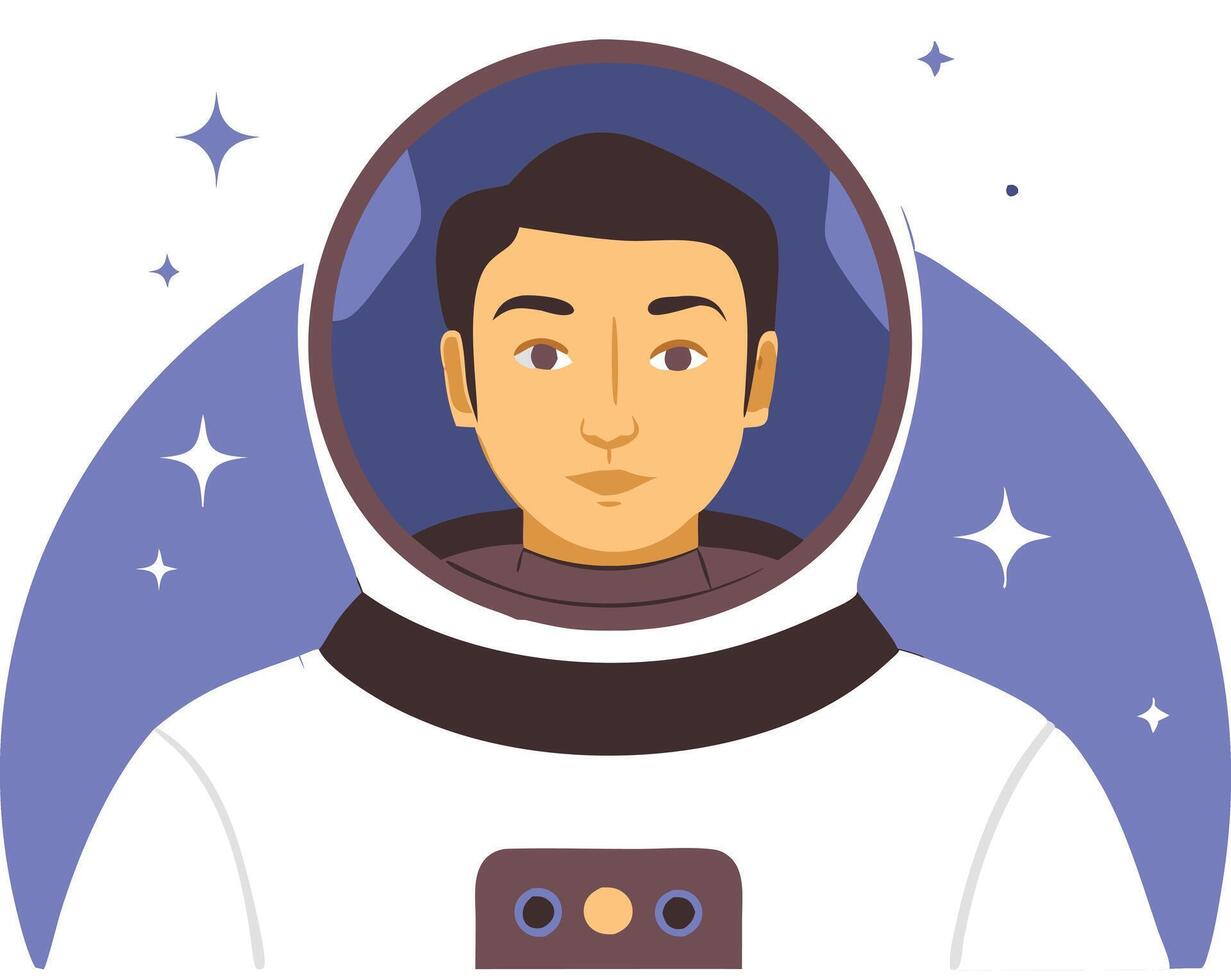 Portrait of an astronaut in a spacesuit, representing exploration, space travel, and adventure in a flat style Pro Vector