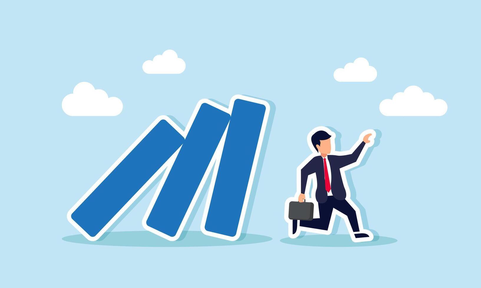 A businessman running to avoid falling blocks, Illustration concept of Avoiding cascading problems in business or projects Pro Vector