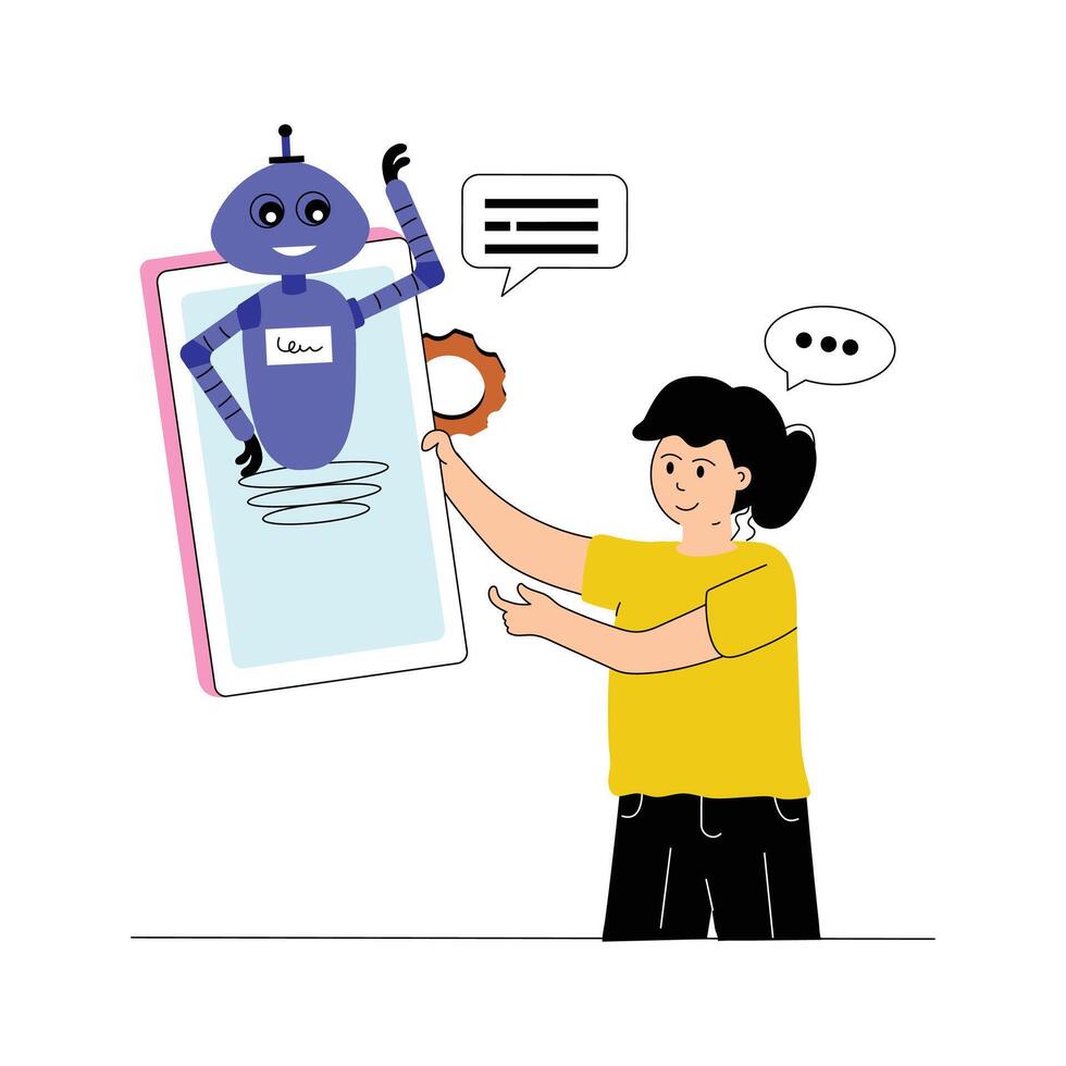 A talking robot with mobile, virtual assistant flat illustration Pro Vector