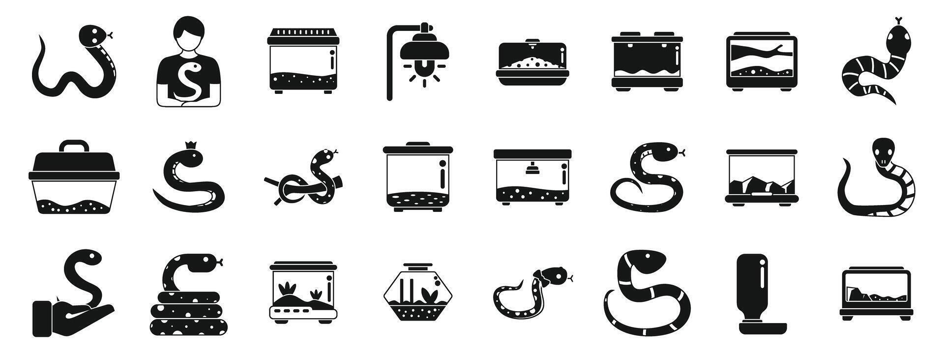 Snake pet icons set. Snake terrarium icons set. Simple set of snake terrarium vector icons for web design on white background Pro Vector