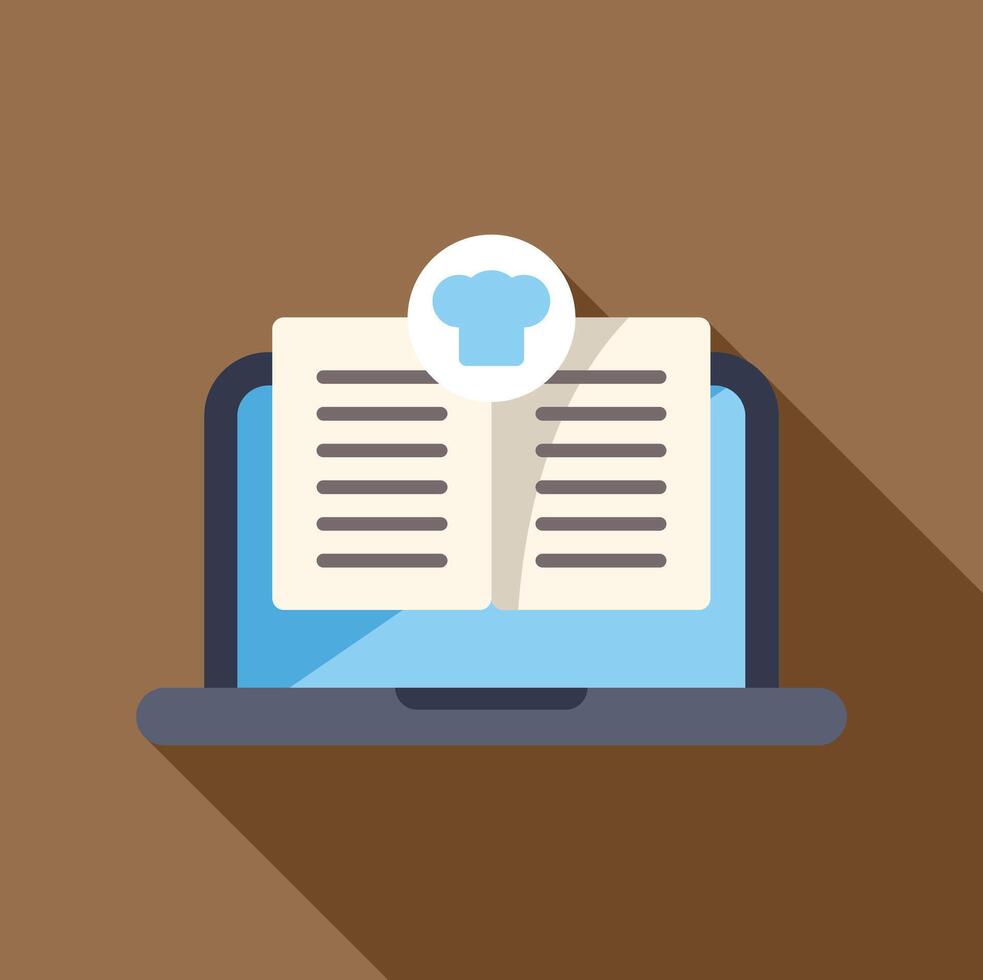 Online culinary course with laptop showing cookbook and chef hat icon, learning cooking skills digitally Pro Vector