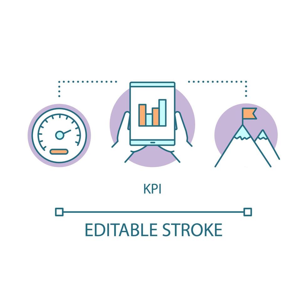 KPI concept icon. Key Performance Indicator idea thin line illustration. Progress indicators. Performance measurement. Goals achieving. Vector isolated outline drawing. Editable stroke Pro Vector