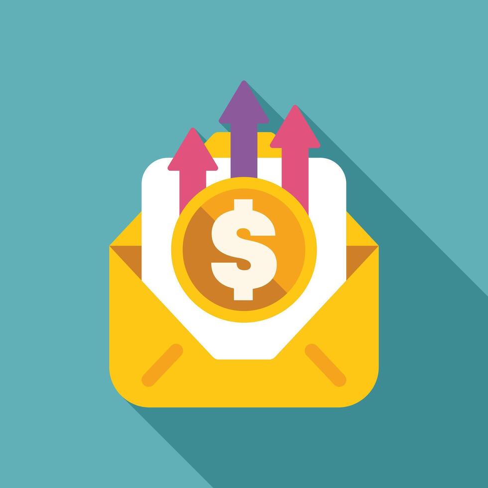 Dollar coin increasing in value coming out of open envelope Pro Vector